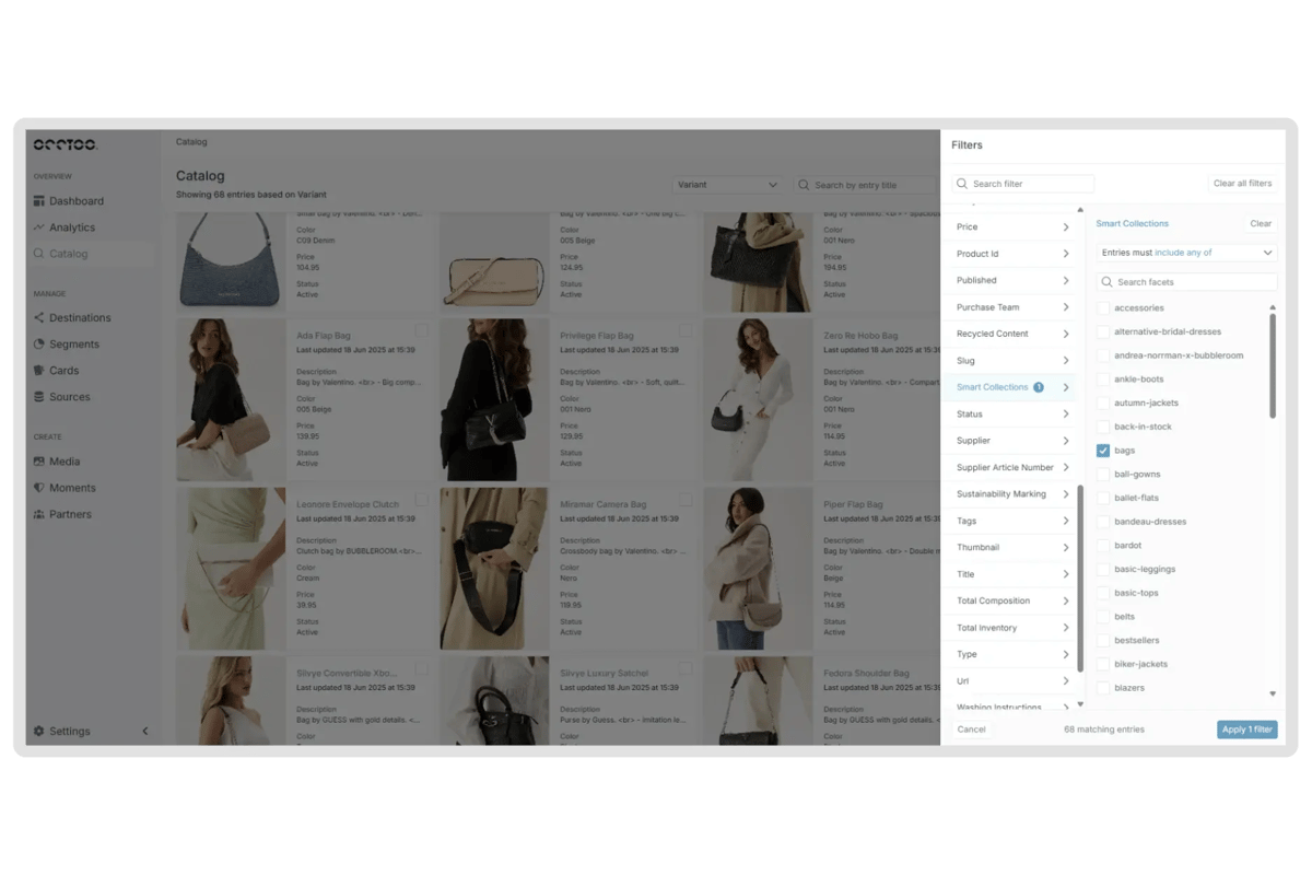 Search and find exactly what you need, down to the most specific attribute. With powerful multi-query filtering and granular attribute-level search, you can instantly surface the right product or variant, no matter the complexity of your catalog.